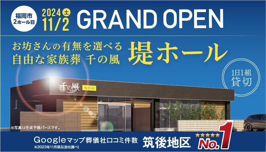 福岡市以外にお住まいの方でも、「自由な家族葬 千の風 堤ホール」をご利用いただけます。