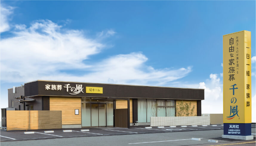 福岡市城南区の油山観光道路沿いにある「自由な家族葬 千の風 堤ホール」は、邸宅型の高級リビングが特徴の葬儀斎場です。家族葬30名まで対応でき、1日1組完全貸切の式場となっています。当斎場の特徴である家族葬専用デザイナーズ・リビングは、ご家族・ご親族だけで自宅のようにリラックスしながら、最後のお別れの時を過ごせるよう設計されています。洋型祭壇をメインに据えたスタイリッシュで明るい内装が特徴の空間です。また、宗教色が抑えられているため、無宗教の葬儀にも対応しております。