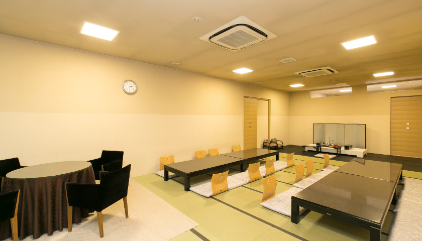 大川市郷原にある「家族葬 天光社 大川郷原式場」は、100名程度まで収容可能な葬祭ホールです。大川市の方はもちろん、近隣市町や佐賀県の方にも広くご利用いただいております。家族葬や一般葬のほか、社葬や合同葬といった多くの参列者様がお見えになる葬儀にもご利用いただけます。1日1組貸切のため他の葬家を気にすることなく、ご家族・ご親族や気心の知れた方々のみで故人様とのお別れの時間をお過ごしいただけることが特徴です。安置室もございますので、お預かり安置のほか、故人様との最後の時間をゆっくりと過ごせる付き添い安置もご利用いただけます。長い入院生活を過ごしていた故人様のために、専用の浴槽やシャワーを使ってお体を清める湯灌のサービスもご案内しております。大川市斎場(火葬場)までは車で約10分でアクセスでき、出棺後のご移動や収骨後のお戻りにも便利な立地です。大川市役所へも車で約2分で到着するため、各種手続きもスムーズに行えます。式場すぐ近くにはゆめタウン大川店があり、買い出しなどにご利用いただけます。