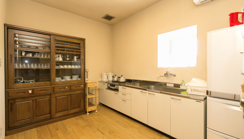 常備品 | テレビ、冷蔵庫、電子レンジ、電気ポット、寝具一式(常備2組・追加可能)、アメニティーセット |