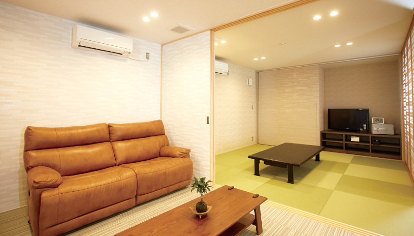 常備品 | テレビ、冷蔵庫、電子レンジ、電気ポット、寝具一式(常備2組・追加可能)、アメニティーセット、カプセル式ドリンクマシン |