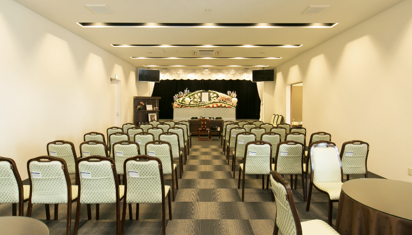 柳川市三橋町柳河にある「天光社 かまち式場」は、少人数の家族葬から一般葬まで対応している葬儀式場です。収容人数は最大60名で、1日1組貸切のため他のご喪家を気にすることなくご利用いただけます。外観は白を基調とし、斎場というよりスタイリッシュなオフィスのようなデザインです。内装は和洋がオシャレに混在するデザイナーズホールとして企画したもので、故人様のお見送りにふさわしい落ち着いたモダンな印象を与えます。親族控え室として20名前後で会食が出来る洋室と6畳の和室があり、バスルームや各種アメニティーも完備。ご自宅のようにゆったりとおくつろぎいただけます。館内はバリアフリーで車椅子が1台完備しております。国道208号線蓮蒲池交差点と沿岸道路「柳川西インター」の間に位置しており、車でのアクセスがしやすい立地です。セブンイレブン、コスモス、洋服の青山、ヤマダ電機、カメラのキタムラなど、周辺店舗も充実しています。