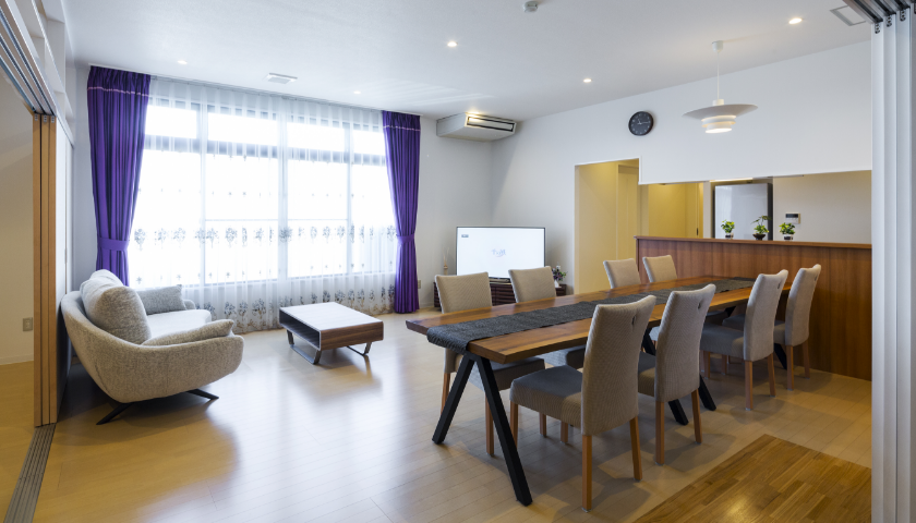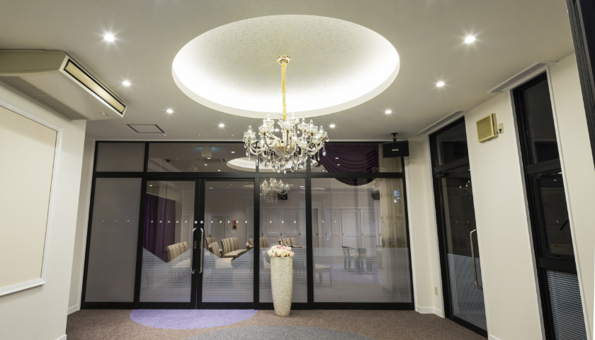 柳川市宮永町にある「家族葬 千の風 宮永ホール」は1999年設立の歴史ある葬儀式場内に、新たにオープンした家族葬専用ホールです。2018年9月に営業を開始しました。近年多くなった少人数の家族葬から、最大40名まで対応できる小規模ホールです。故人様との最後のお別れの時間を近しい方々だけでごゆっくりとお過ごしください。施設内には華やかなシャンデリアが飾られており、品格を保ちながらもおしゃれな空間が演出されています。光に満ちた明るい雰囲気の中で故人様をお見送りできます。親族控え室は開放的なリビング・ダイニング・キッチン、バス、トイレを完備。車椅子が1台用意されておりますので、高齢者や身体の不自由な方でも安心してご利用いただけます。柳川市から南へ向かう県道766号線上にあり、周辺にはコンビニなどもあるため買い出しにも便利な立地となっております。西鉄大牟田線柳川駅からお越しになる場合はタクシーかバスをご利用ください。