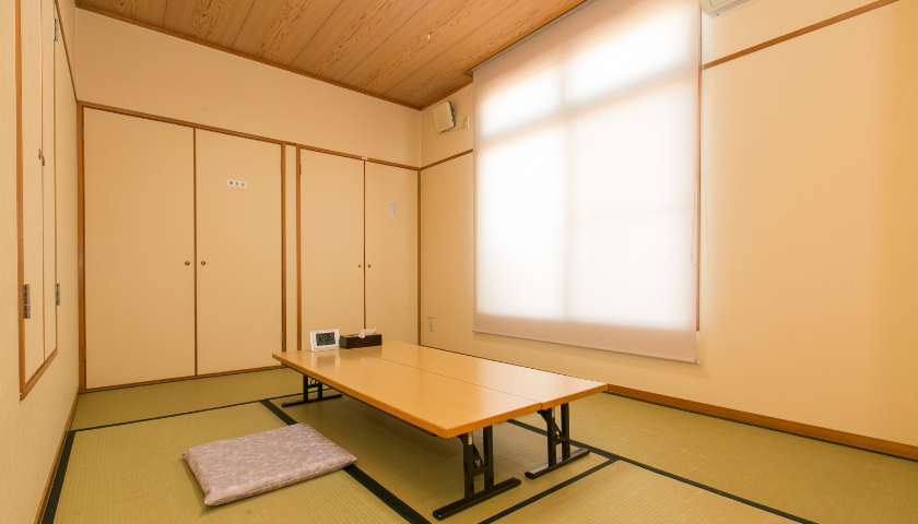 柳川市宮永町の県道766号線上にある「天光社 宮永式場」は、1999年設立の歴史ある葬儀式場です。収容人数は最大150名で、一般葬から大型葬まで対応できます。厳かな祭壇と派手さを抑えたホールは、故人様を悼み、お別れする場にふさわしい雰囲気を醸し出しています。親族控え室も広々とした非常にゆとりのあるスペースとなっており、寝具や各種アメニティーも完備。ご家族・ご親族はもちろん、お手伝いいただく関係者の方々もゆったりとおくつろぎいただけます。同じ建物内に2018年開場の「家族葬 千の風 宮永ホール」があり、ご要望に応じて使い分けも可能です。周辺にはコンビニなどもあるため買い出しにも便利な立地です。西鉄・柳川駅からお越しになる場合はタクシーかバスをご利用ください。事前相談会は毎日実施しており、葬儀の費用や必要な手続きについて丁寧にご説明いたします。まずは24時間365日無料の電話相談にてお気軽にお問い合わせください。