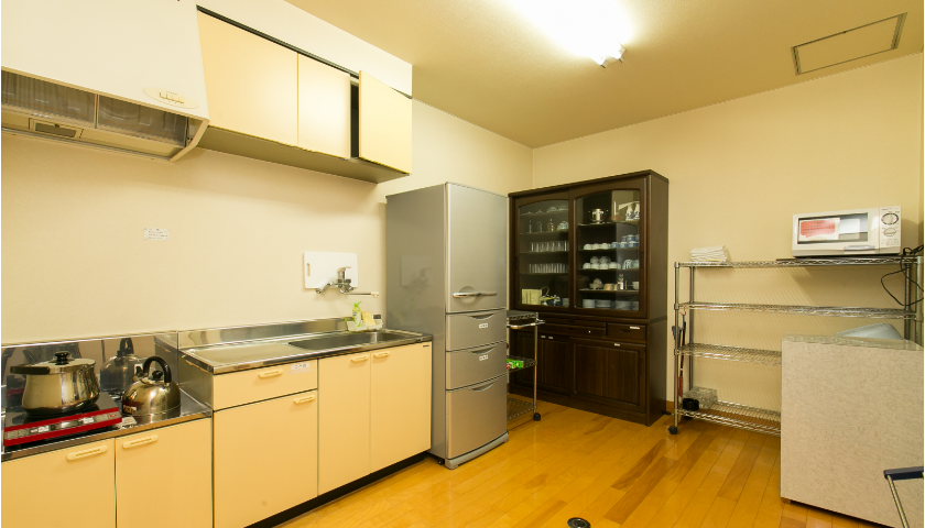 常備品 | テレビ、冷蔵庫、電子レンジ、電気ポット、寝具一式(常備2組・追加可能)、アメニティーセット |