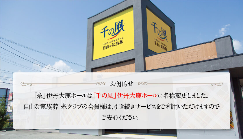 「家族葬 千の風伊丹大鹿ホール」から近い葬儀場(自社式場)は、「家族葬 千の風 伊丹昆陽ホール」「家族葬 千の風 川西加茂ホール」です。