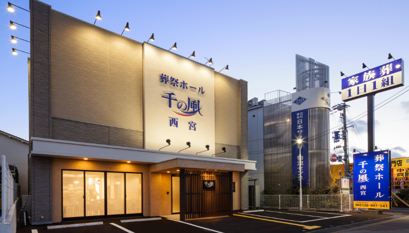 「家族葬 千の風 西宮瓦木ホール」から近い葬儀場(自社式場)は、「家族葬 千の風 西宮甲子園ホール」「家族葬 千の風 尼崎南武庫之荘ホール」です。
