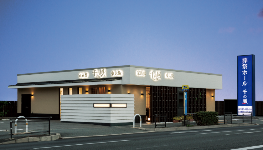 「家族葬 千の風 東大阪瓢箪山ホール」から近い葬儀場(自社式場)は、「家族葬 千の風 東大阪菱江ホール」「家族葬 千の風 東大阪八戸ノ里式場」です。