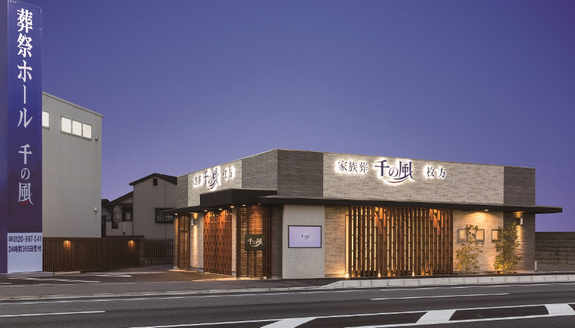 「家族葬 千の風 枚方田口ホール」から近い葬儀場(自社式場)は、「家族葬 千の風 寝屋川西ホール」「家族葬 千の風 守口大日ホール」です。