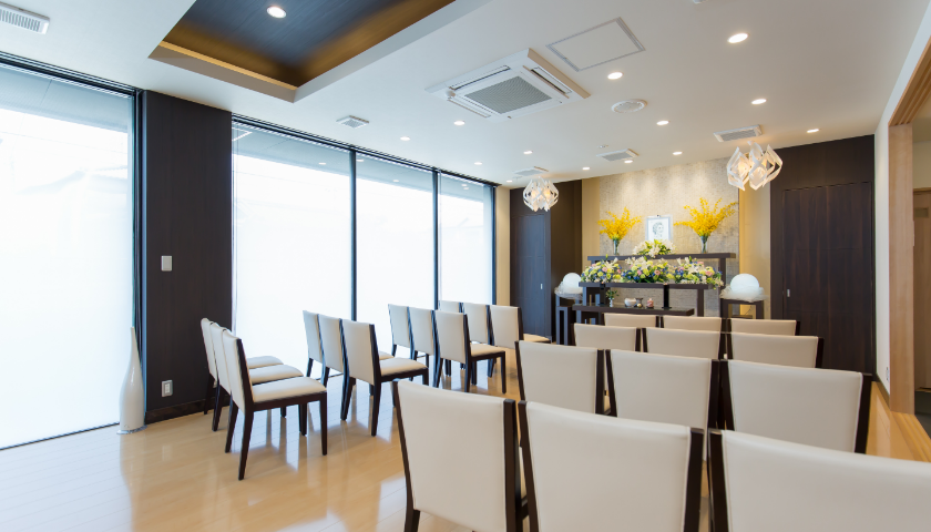 大阪府吹田市にある「家族葬 千の風 吹田ホール」は、家族葬専用に設計された1日1組貸切のリビングホールです。当ホールの鍵をお渡しするなど、ご自宅のようにお使いいただける空間となっております。他のご喪家を気にすることなく、ご家族や親しい間柄の皆様だけで心ゆくまで故人様をお偲びください。ホール内は和と洋がほどよく調和したモダンな印象の空間になっております。故人様をおまつりする祭壇を取り囲むように座席を配置。祭壇横のスペースには脚を伸ばしておくつろぎいただける2部屋つづきの和室もご用意しております。各種アメニティーや浴室設備も完備しており、安置しながらのご宿泊も可能です。吹田市立やすらぎ苑(火葬場)までは車で約8分、吹田市役所までは約10分と、大変利便性の高い立地となっております。火葬の手続きや死亡届の提出など、葬儀に関することはすべて経験豊富なスタッフがフォローいたしますのでご安心ください。