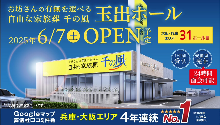「千の風 玉出ホール」は、地域に根差した心温まるご葬儀をサポートし、大切な方とのお別れの時間を丁寧にお手伝いします。見学やご相談はいつでも承っておりますので、お気軽にお問い合わせください。