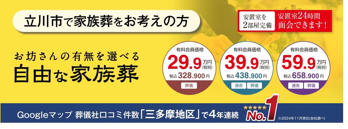 - 立川市に近郊のおすすめの葬儀場(自社式場)は?