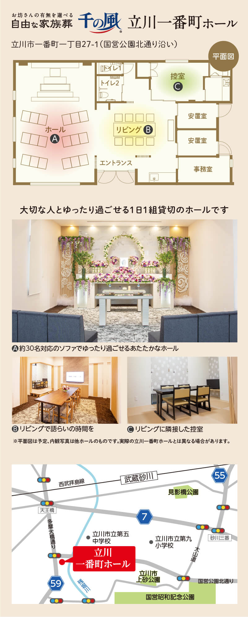 【2024年 8月オープン】自由な家族葬 千の風 立川一番町ホール