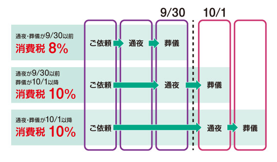 通夜・葬儀のうち、葬儀が2019年10月1日以降になる場合につきましては、