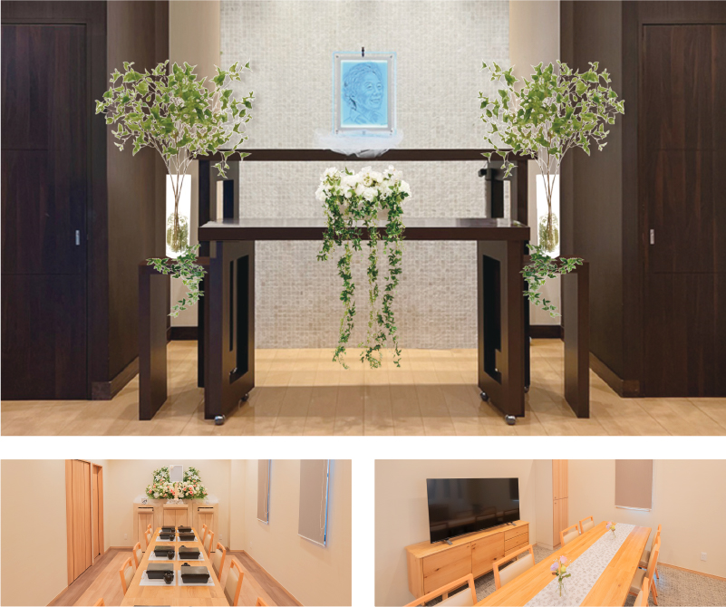 法要室(法事祭壇込み)・会食室・スタッフ(1名) | 対応人数:15名程度 |